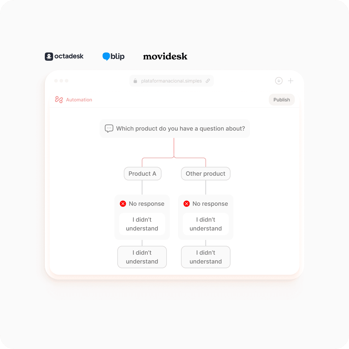 Movidesk, Octadesk, and Blip work for simple operations without advanced automations. The problem arises when the company grows.