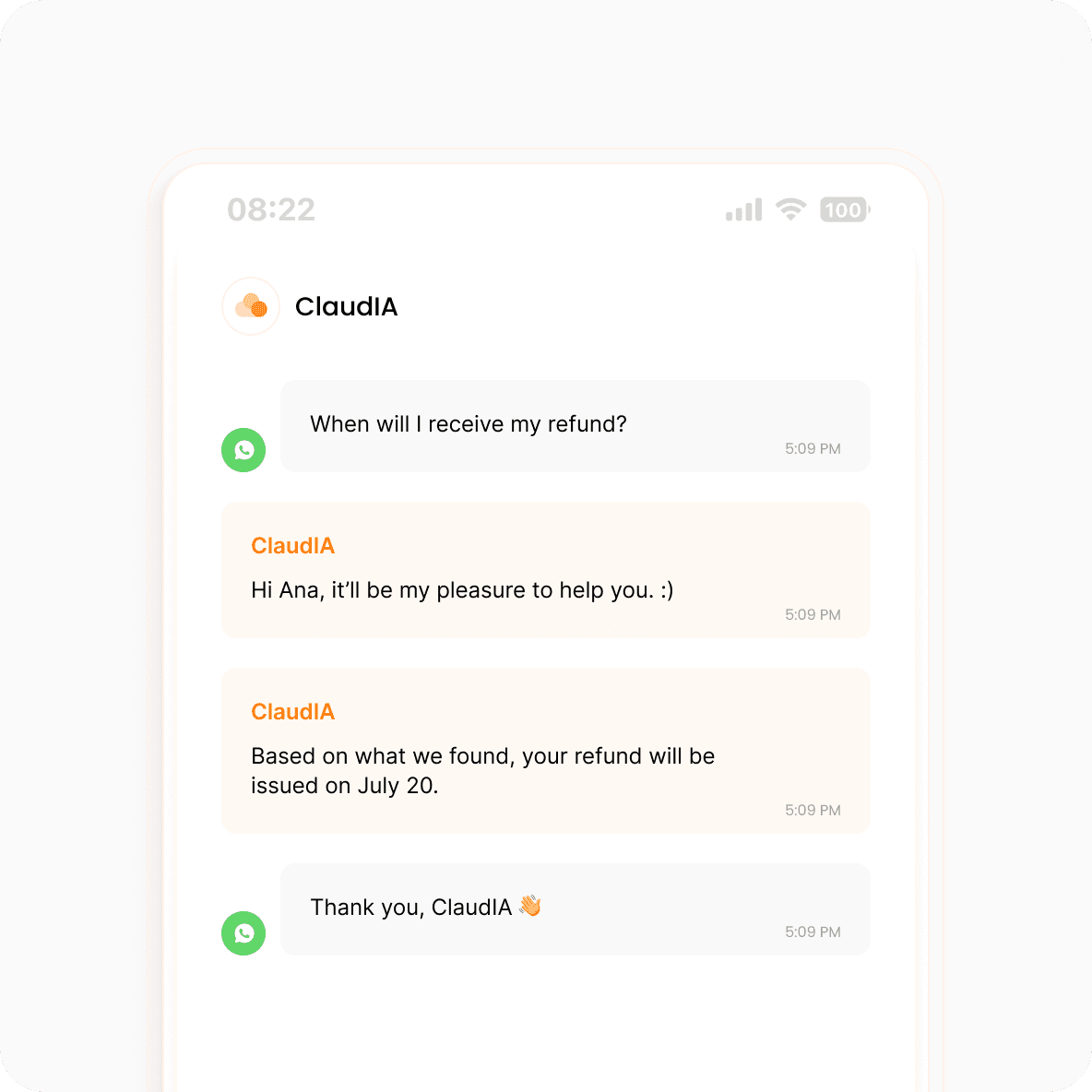 At Cloud Humans, AI is a true agent. ClaudIA understands context, converses like a human, and goes beyond ready-made responses: it queries internal systems, updates orders, fills in fields, and even interprets documents, photos, and audio.