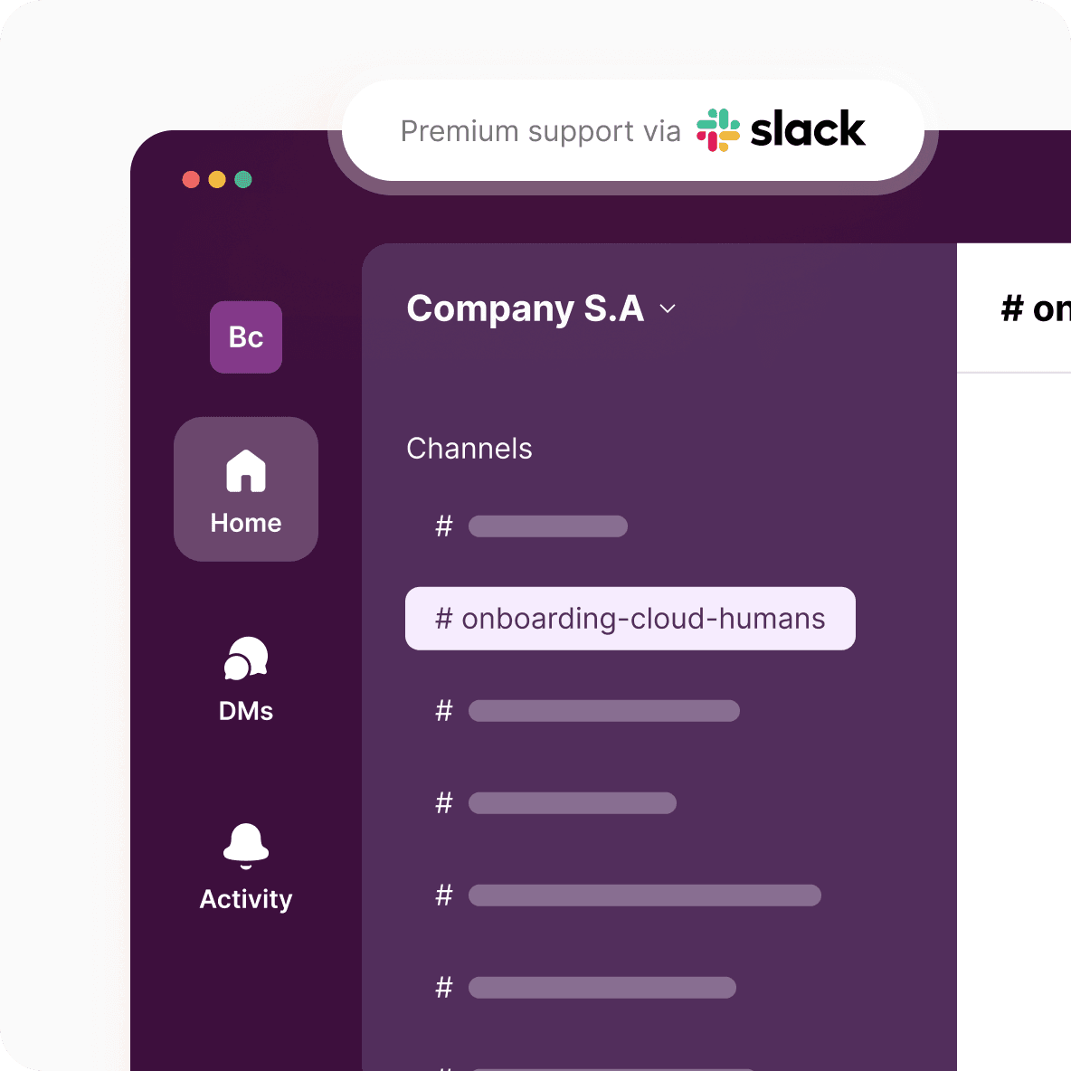 You gain access to a private channel on Slack, ensuring agile and customized support.