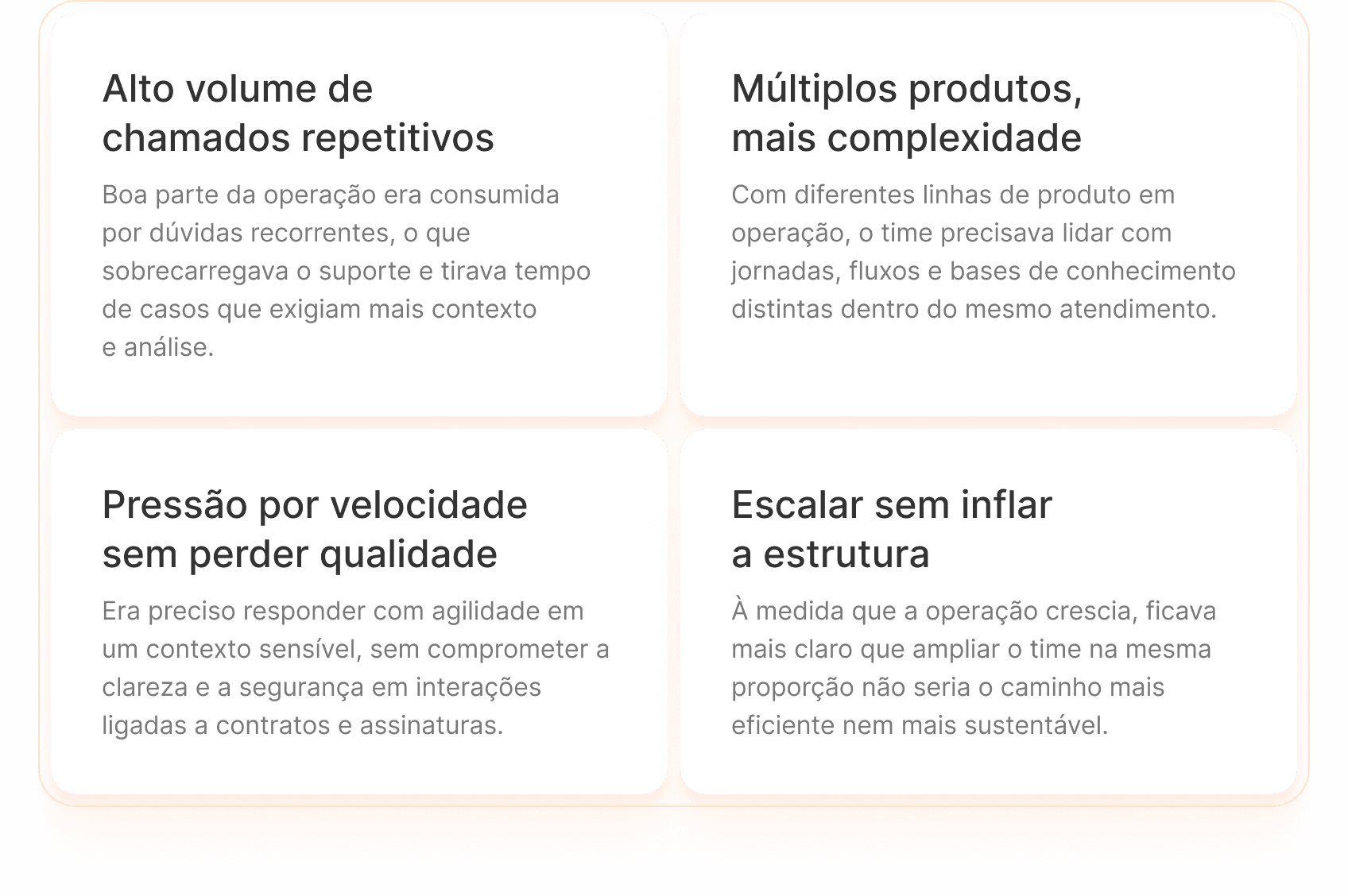 Com a evolução da operação, a Contraktor passou a enfrentar um desafio comum em empresas SaaS com portfólio mais amplo: sustentar velocidade e qualidade no atendimento sem transformar o suporte em uma estrutura cada vez mais pesada.