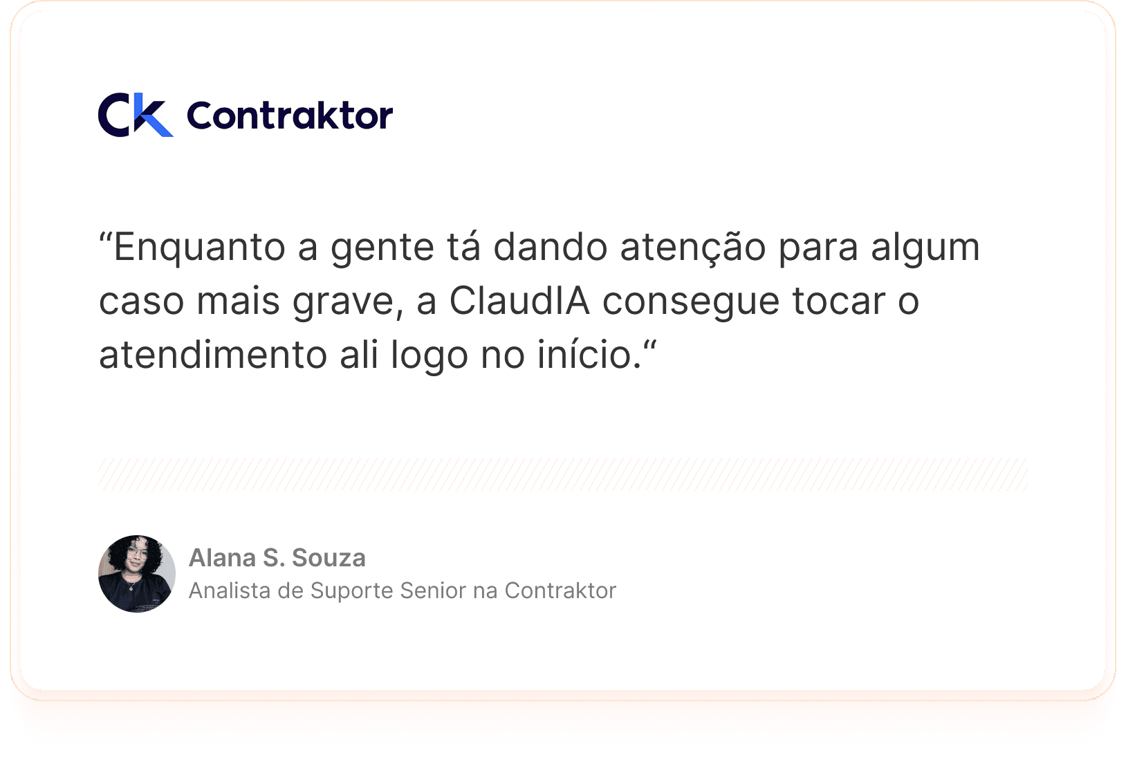 A resposta da Contraktor foi estruturar o atendimento inicial com a ClaudIA, usando IA para absorver o N1, lidar com dúvidas recorrentes e dar mais fluidez à entrada dos chamados.