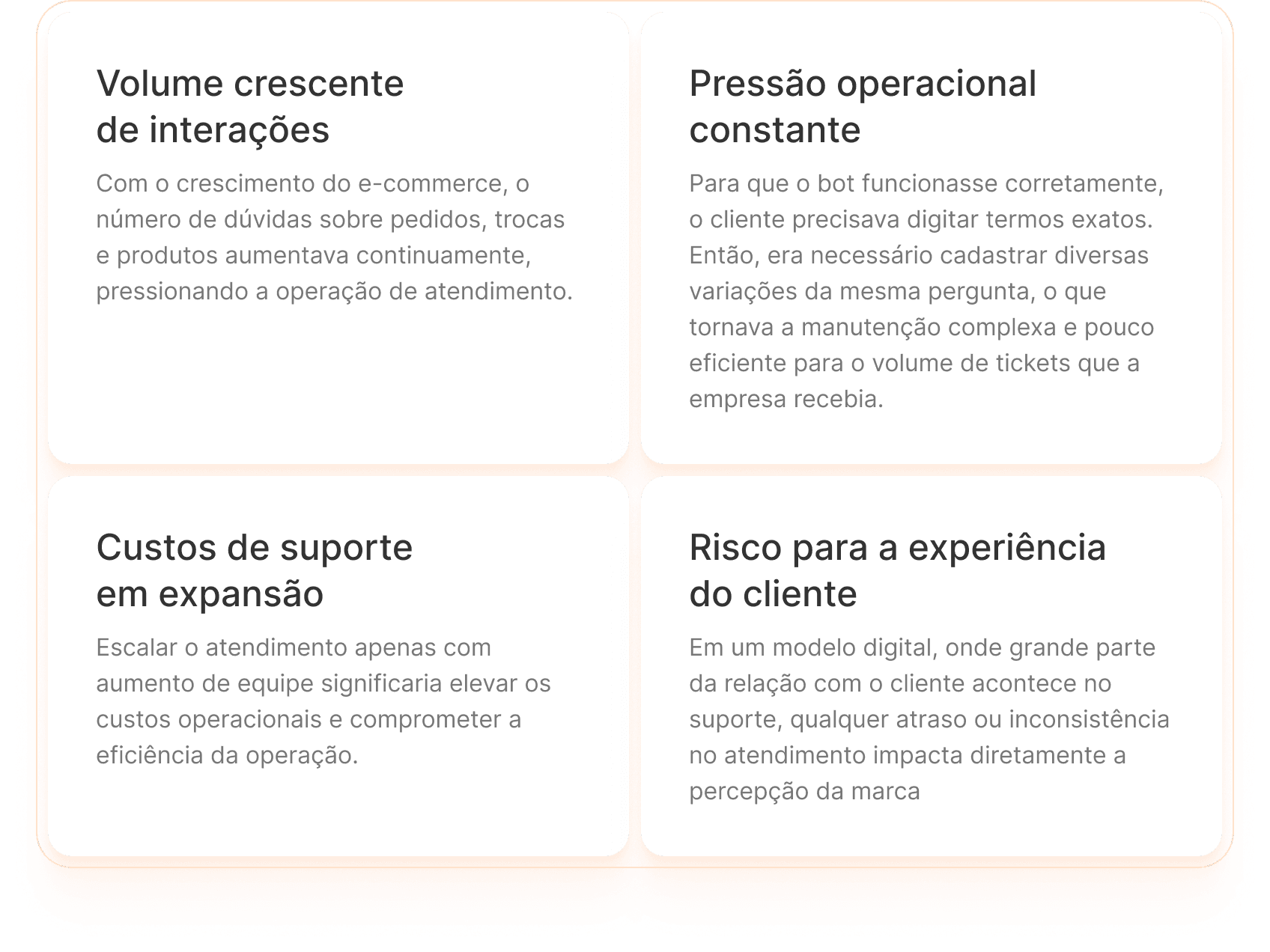 Em uma operação em que agilidade, clareza e empatia fazem parte da percepção de valor do cliente, CX não podia se tornar apenas uma área de suporte. Ele precisava crescer junto com a empresa, sem depender do aumento do time na mesma proporção. Isso significava lidar com mais demanda, maior pressão operacional e menos espaço para construir uma experiência realmente consistente.