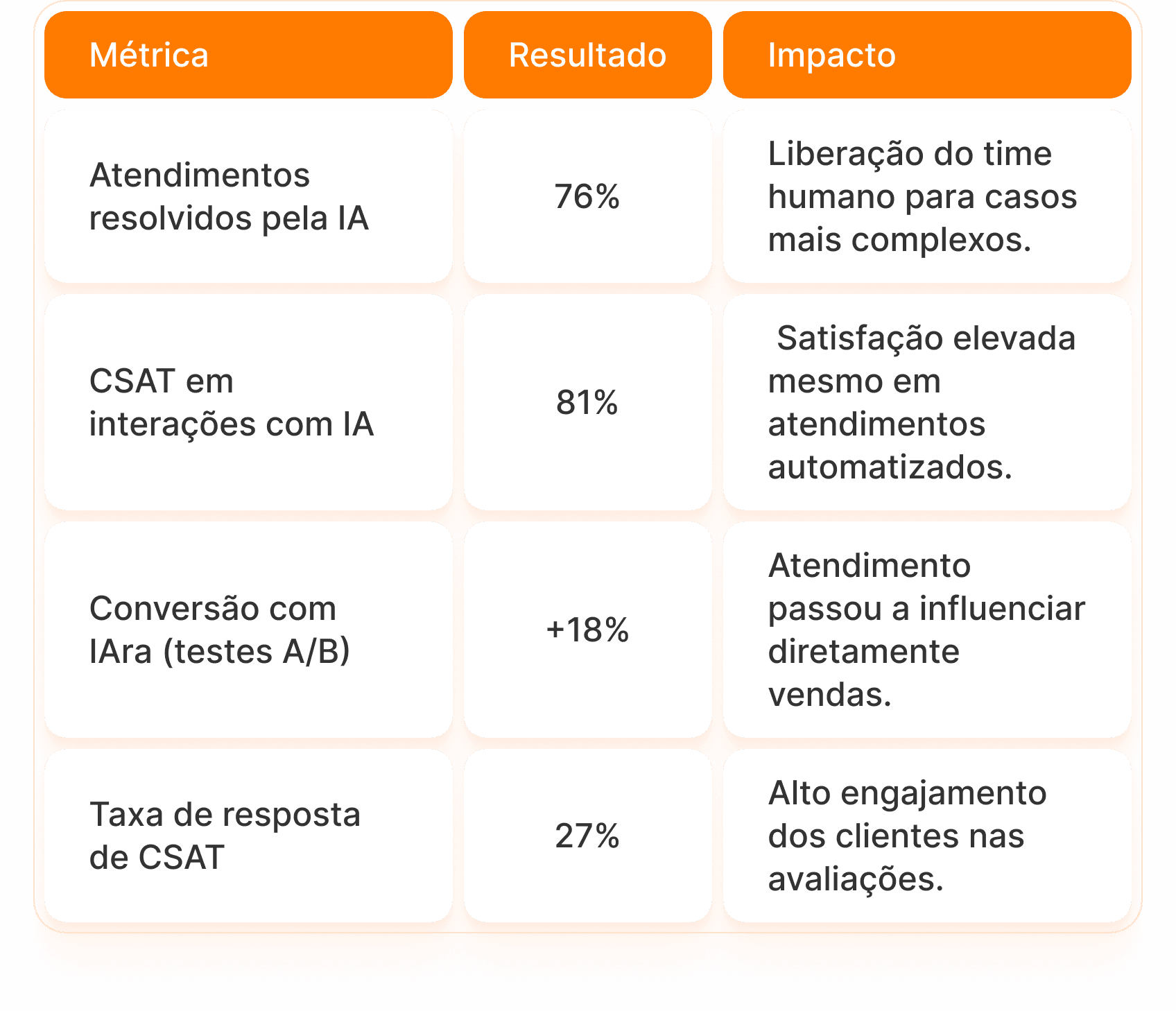 Com acompanhamento contínuo do time de CX, a IA passou a evoluir constantemente a partir das interações reais com os clientes.
