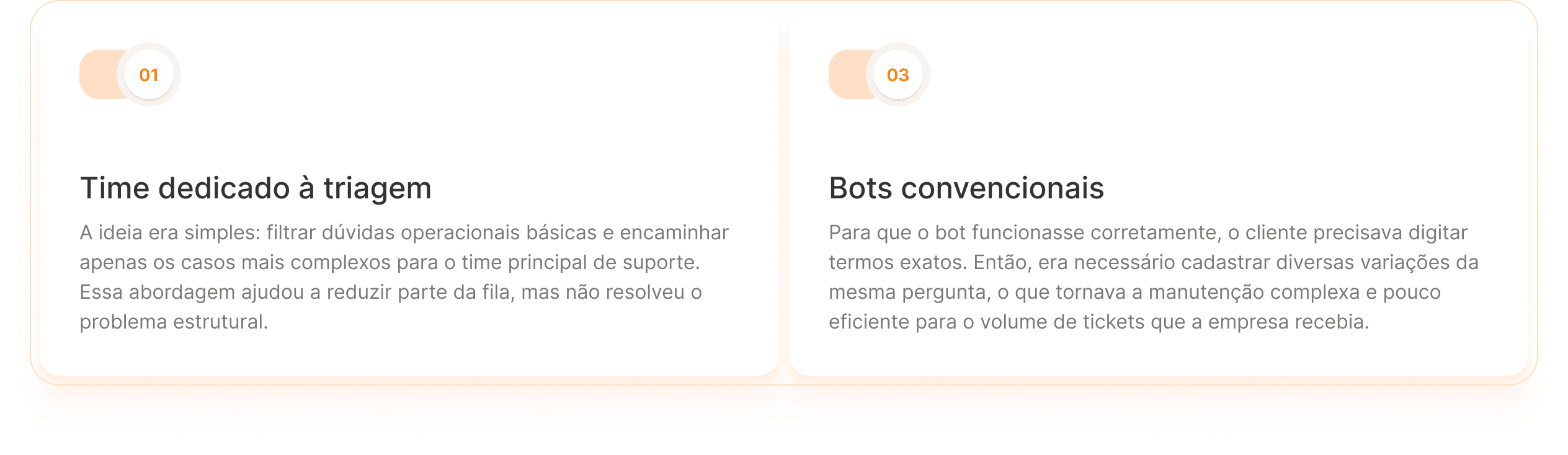 Mesmo com essas iniciativas, o time ainda enfrentava um desafio recorrente: equilibrar crescimento da base de clientes sem precisar aumentar o time na mesma proporção. Para isso, era necessário encontrar uma solução que realmente conseguisse absorver o volume de dúvidas operacionais sem comprometer a experiência do cliente.