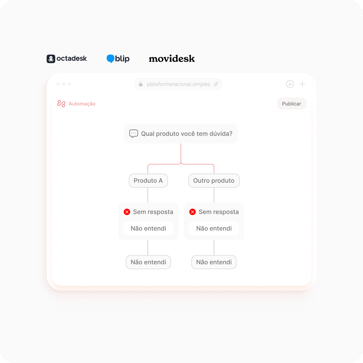 Movidesk, Octadesk e Blip funcionam para operações simples sem automações avançadas. O problema aparece quando a empresa cresce.