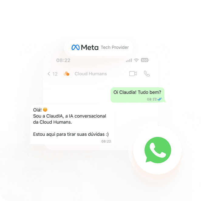 Somos parceiros oficiais da Meta e cuidamos de toda a integração. O uso é gratuito, com custo apenas para mensagens proativas (da própria Meta)
