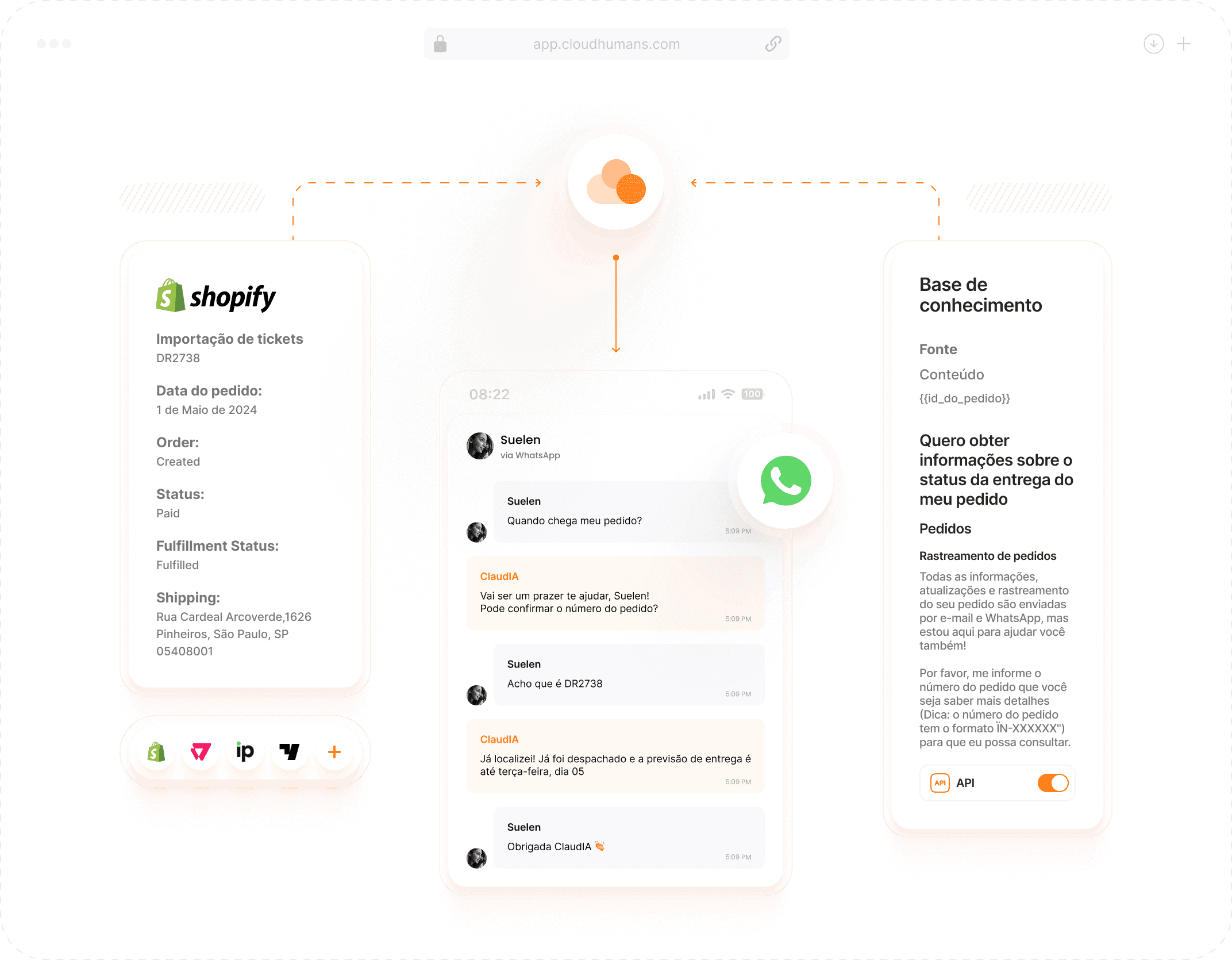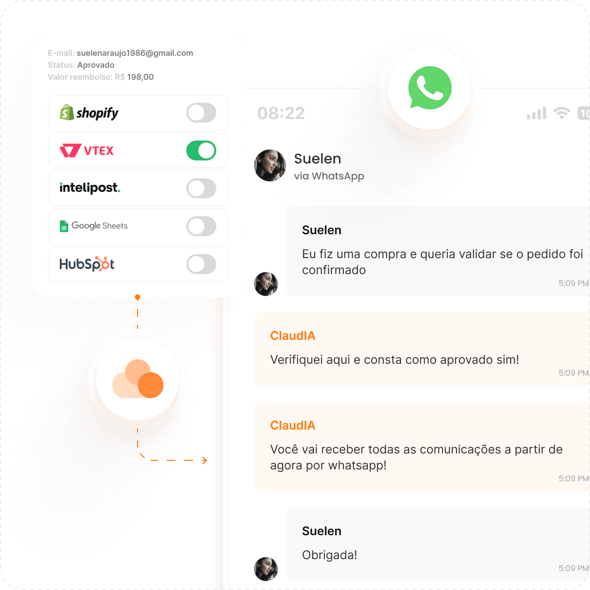 Antes da ClaudIA entrar em ação, ajudamos no setup dos seus canais de atendimento e integração com sistemas.